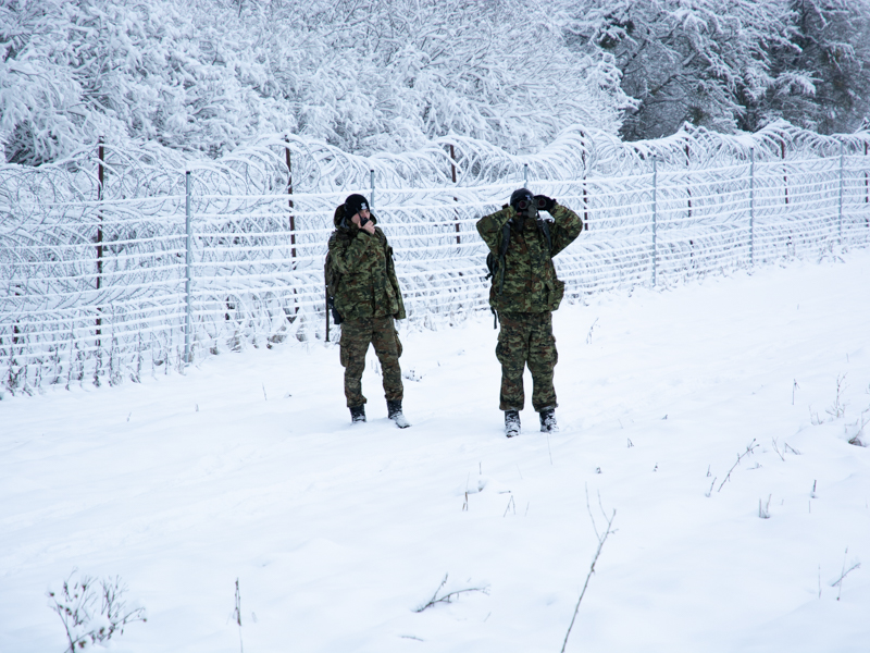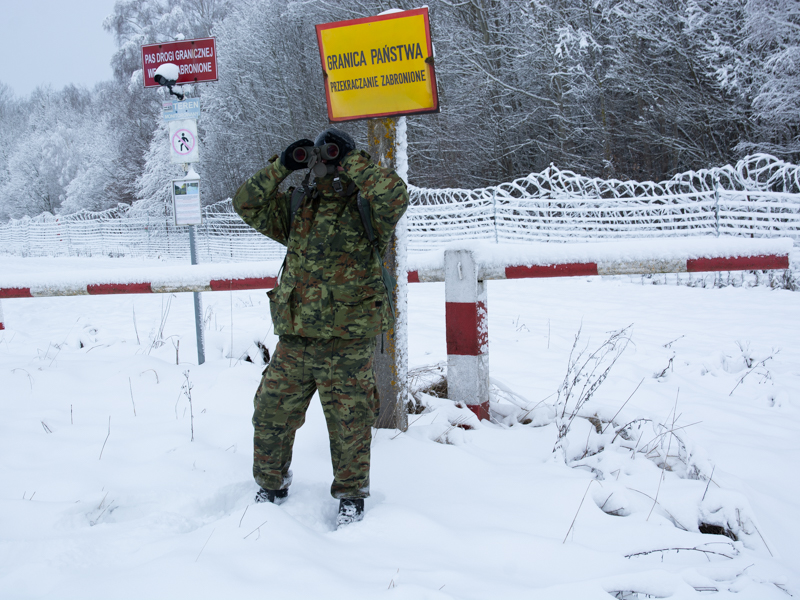 funkcjonariusz Straży Granicznej podczas obserwacji -