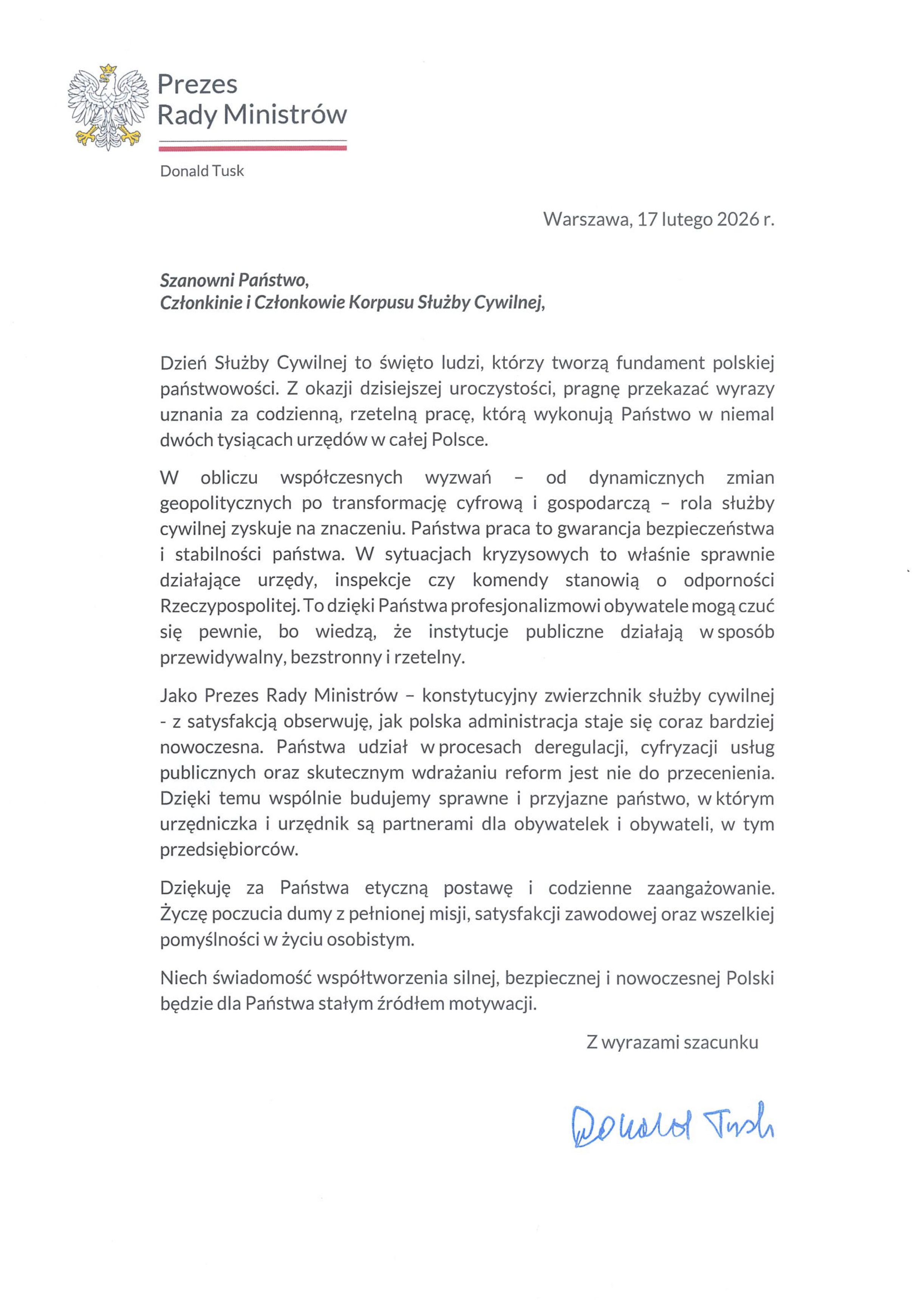 Życzenia od Prezesa Rady Ministrów - Aktualności