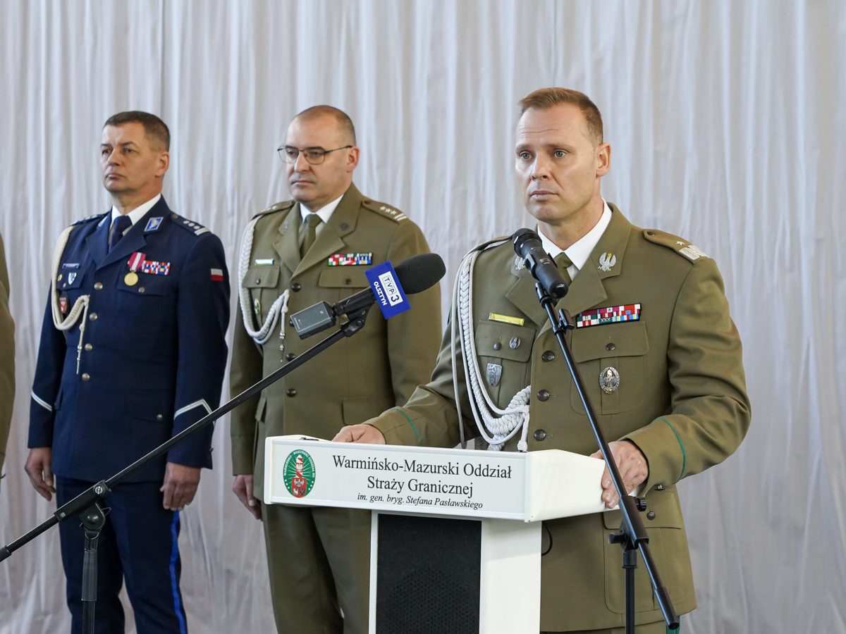 Komendant oddziału pogratulował ślubującym funkcjonariuszom wstąpienia w szeregi Warmińsko-Mazurskiego Oddziału Straży Granicznej. Powiedział „… jestem dumny, że wybraliście służbę w Straży Granicznej. Służba w naszej formacji to zadanie trudne i wymagające, ale to także zadanie, które daje wiele satysfakcji i możliwość rozwoju zawodowego. Podczas realizacji zadań służbowych miejcie zawsze na względzie dobro obywatela i Państwa Polskiego...”.