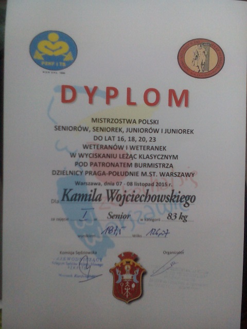 Złoty medal i aktualny rekord Polski pozostają zatem na kolejny rok w jego rękach. Nasz zawodnik w tym sezonie zdobył trzy najważniejsze tytuły: Mistrza Polski Międzynarodowej Federacji Trójboju Siłowego, Mistrza Polski Służb Mundurowych, a także wygrał Puchar Polski.
