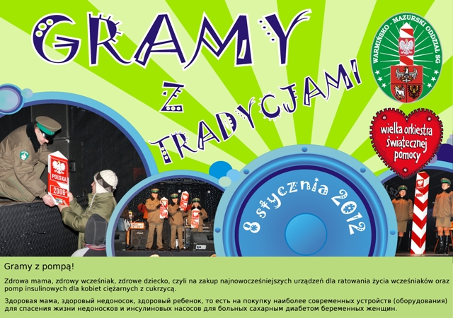 Tegoroczne hasło towarzyszące udziałowi Warmińsko-Mazurskiego Oddziału SG w 20. Finale Wielkiej Orkiestry Świątecznej Pomocy brzmi: „Gramy z tradycjami”. Tradycją bowiem już jest, że wspieramy szczytną ideę Orkiestry. W niedzielę 8 stycznia br. będziemy towarzyszyć organizatorom w Olsztynie, Kętrzynie, Braniewie, Górowie Iławeckim, Bartoszycach, Węgorzewie i Gołdapi.