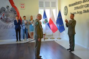 Dzisiaj w obecności rodziny, kadry kierowniczej oraz funkcjonariuszy i pracowników W-MOSG odczytano rozkaz o mianowaniu na wyższy stopień oficerski. Komendant Główny Straży Granicznej gen. dyw. SG Tomasz Praga z dniem 19 sierpnia 2022 r. mianował mjr. SG Józefa Woś na stopień podpułkownika SG. Natomiast Komendant Warmińsko-Mazurskiego Oddziału Straży Granicznej gen. bryg. SG Robert Inglot wręczył odchodzącemu na emeryturę, szablę oficerską, jako dowód uznania i podziękowania za długoletnią służbę Ojczyźnie.