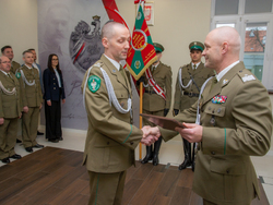 Dzisiaj w obecności pocztu sztandarowego i kadry kierowniczej Warmińsko-Mazurskiego Oddziału Straży Granicznej, Komendant W-MOSG gen. bryg. SG Tomasz Zybiński przywitał nowego Zastępcę Komendanta ds. logistycznych.