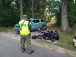 Funkcjonariusze z Warmińsko-Mazurskiego OSG w ramach wsparcia Podlaskiego OSG, w powiecie suwalskim zatrzymali do kontroli drogowej citroena i volvo. W pojazdach ujawniono 10 nielegalnych migrantów.