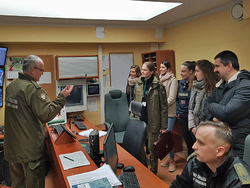 Studenci i pedagodzy z Akademii Korpusu Policyjnego w Bratysławie z wizytą na drogowym przejściu granicznym w Bezledach i Strzeżonym Ośrodku dla Cudzoziemców w Kętrzynie.