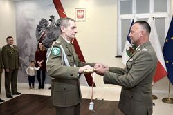 W Komendzie Warmińsko-Mazurskiego Oddziału Straży Granicznej odbyło się uroczyste pożegnanie odchodzącego na emeryturę po ponad 37 latach służby kierownika Sekcji Techniki Specjalnej WTiZ mjr. SG Jarosława Kruszyńskiego.