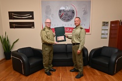 Komendant Warmińsko-Mazurskiego Oddziału Straży Granicznej gen. bryg. SG Robert Inglot wręczył pamiątkowy grawerton za sumienną służbę w formacji Komendantowi Placówki Straży Granicznej w Barcianach.